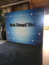 Step and Repeat LA produced one of its signature Media Walls, which featured large 3D letters of the shows title, as the photo-op backdrop for the private viewing party. The wall measured in at 8 high by 10 wide, and was created using a series of wooden set flats with a matte-finished fabric print stretched onto the front-facing side. The press wall was then finished with black gatorfoam returns and a sleek black carpet.